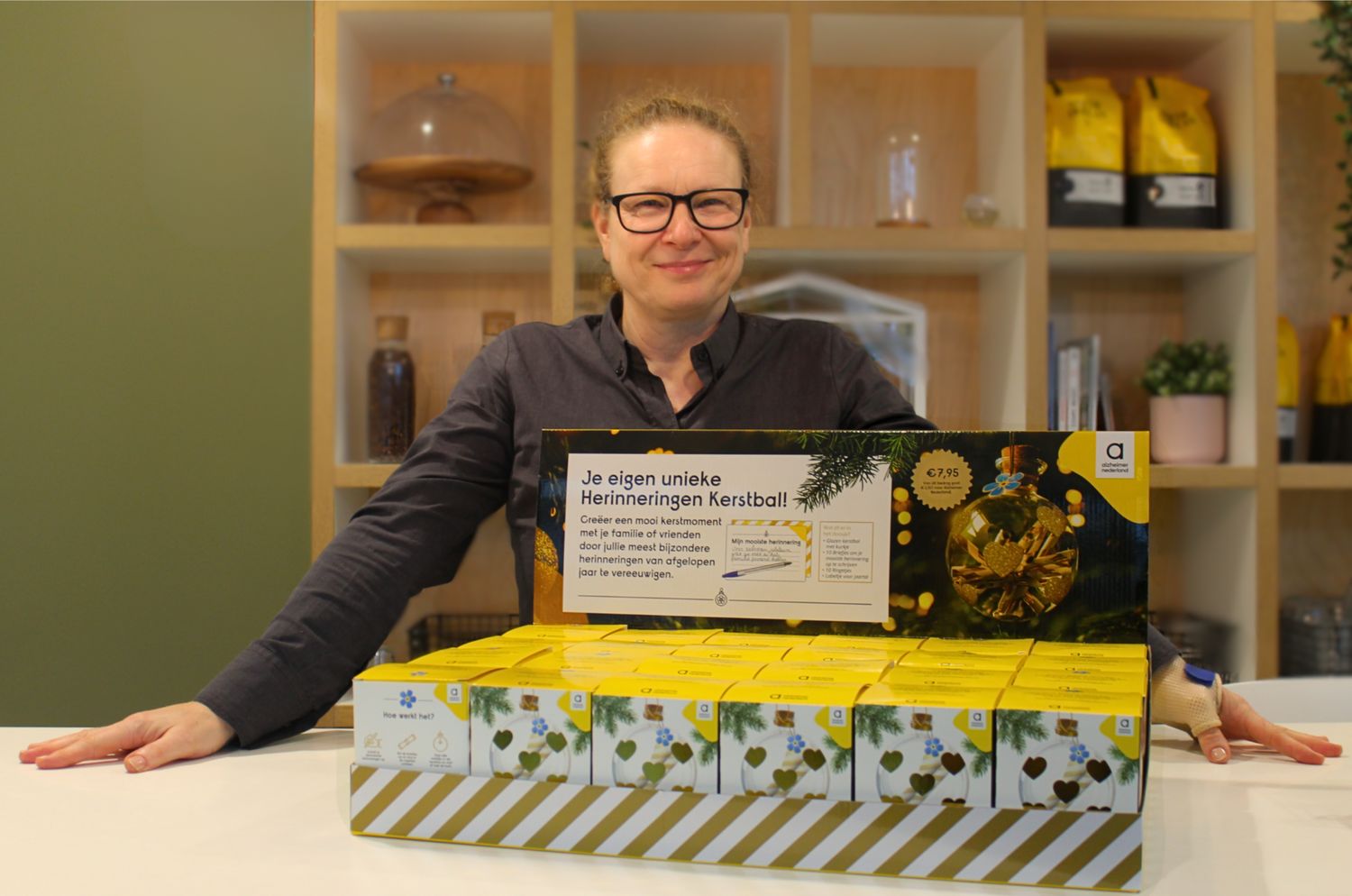 Word nu óók trotse verkoper van de unieke Herinneringen Kerstbal. Een persoonlijk, waardevol cadeau, waarmee je ook nog eens Alzheimer Nederland steunt. De Herinneringen Kerstbal wordt geleverd in een aantrekkelijke display van 24 stuks. Ideaal voor op de toonbank bij de kassa.